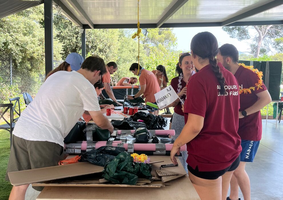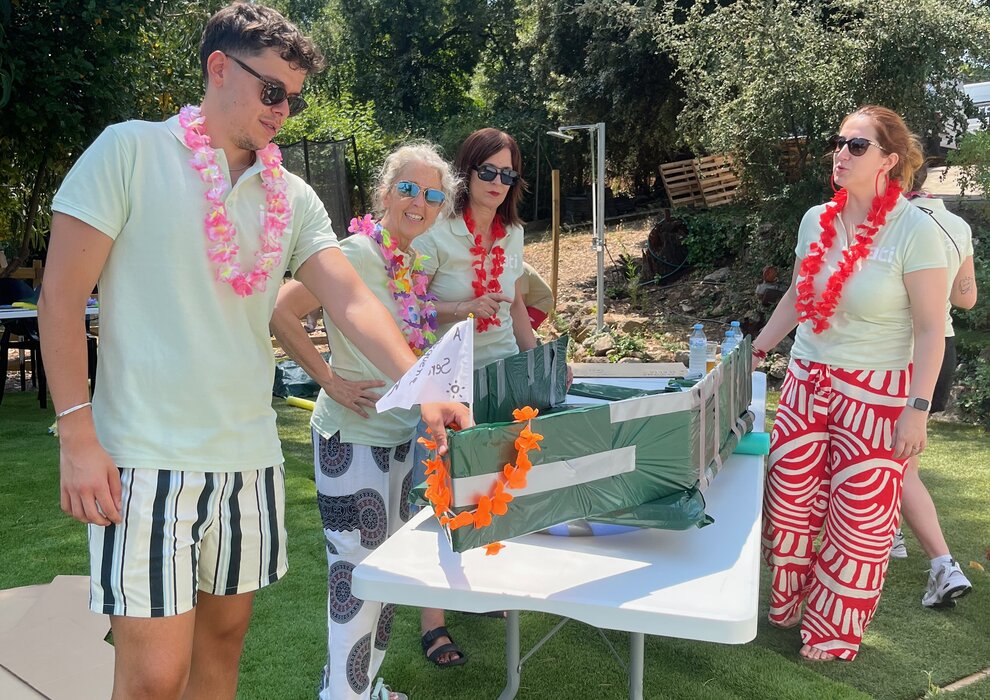 The morning started with the Boat Challenge in the pool. Teams built their cardboard boats and raced, with a captain on board and everything at stake. The energy it creates carries naturally through the rest of the day.